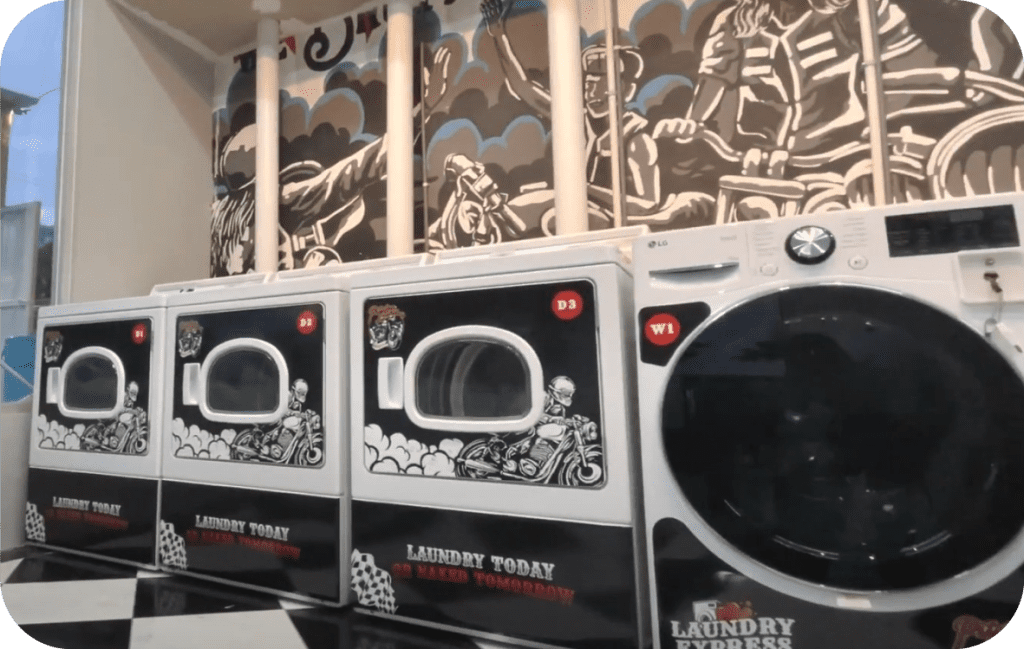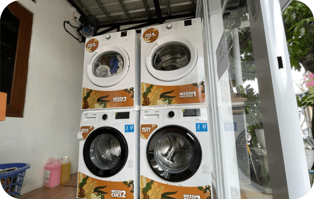 Siapa sangka tempat yang biasa digunakan untuk nongkrong dengan teman, disulap jadilaundry self service dengan konsep kece!